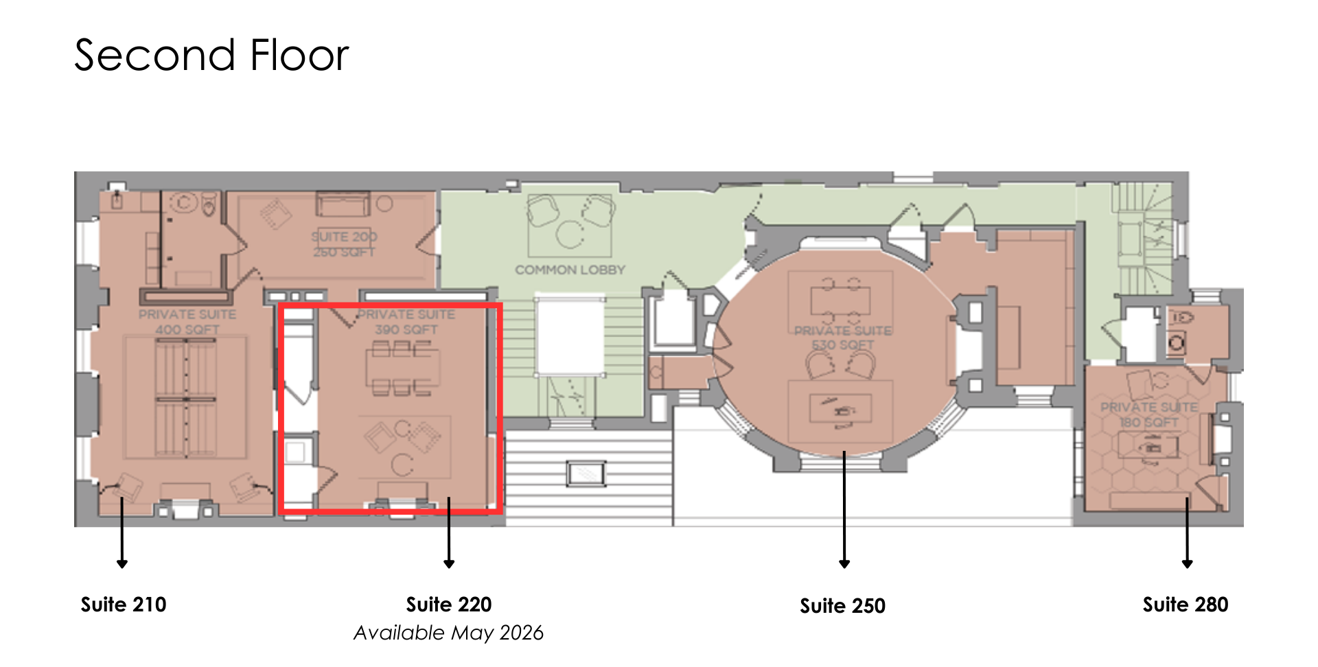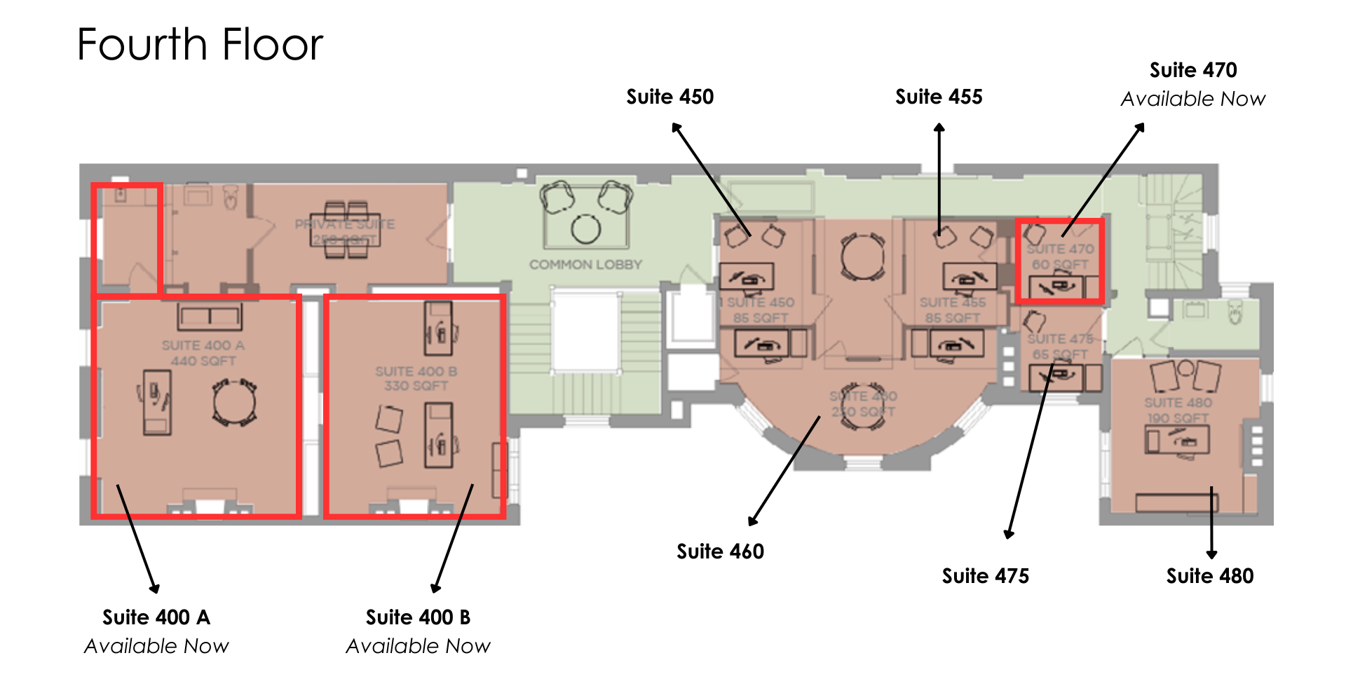 City House 6 E Eager offers single tenant office spaces as well as offices for small teams and groups. It is the perfect space for entrepreneurs, CEOs, innovators and the gritty business mogul. Please see office vacancies highlighted in red below.